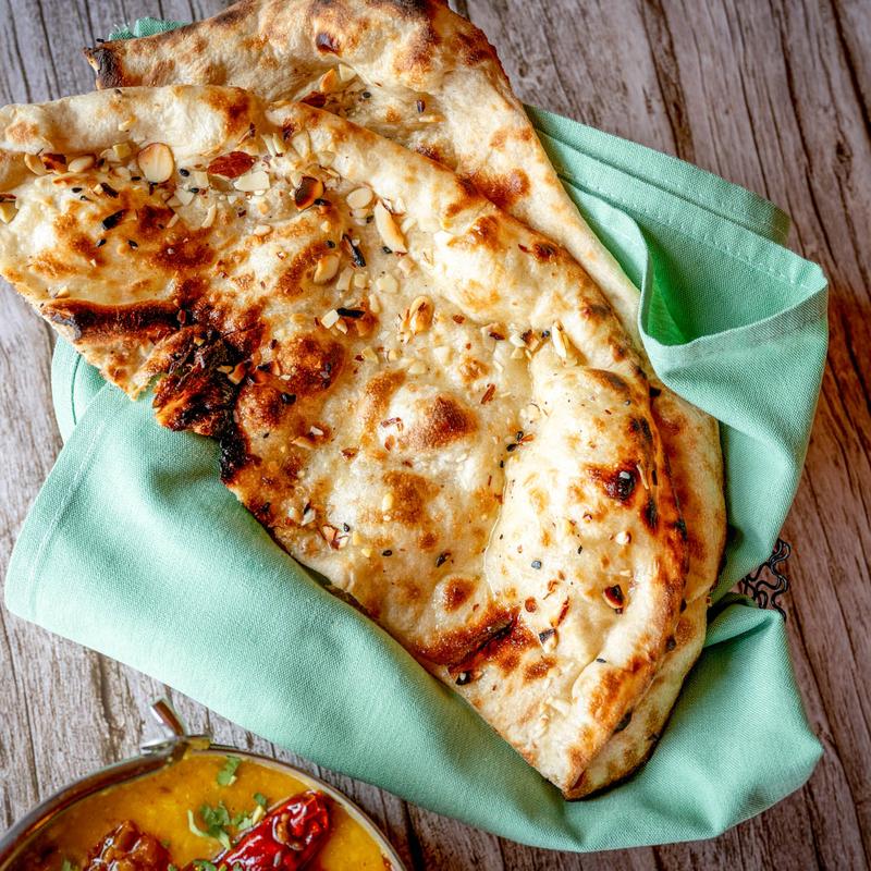 Layered whole wheat buttered bread, served plain or topped with dried mint, recommended with Daal Bokhara or Malai Kofta
